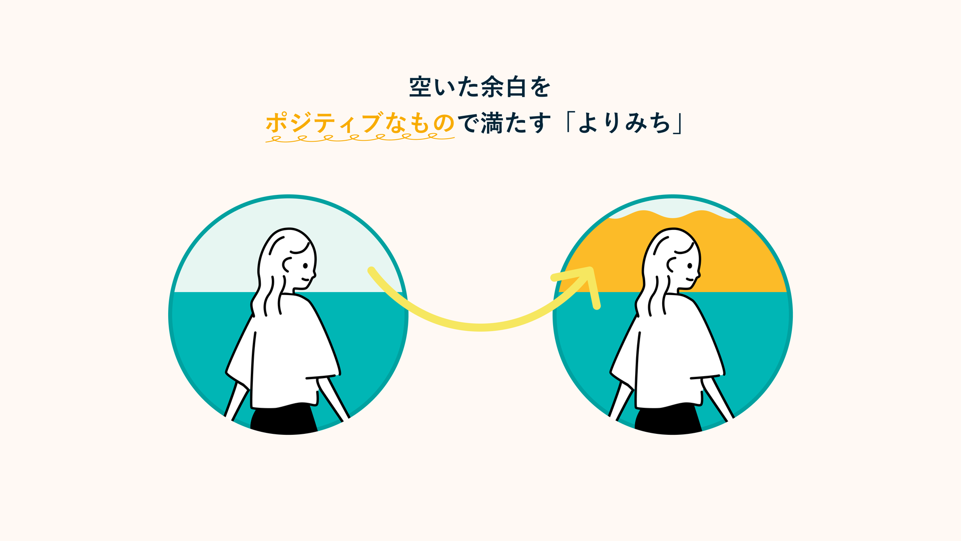 私たちは、「心にできた余白をポジティブな ”コト・もの・ひと・場” で満たす」ことを「よりみち」と呼んでいます。